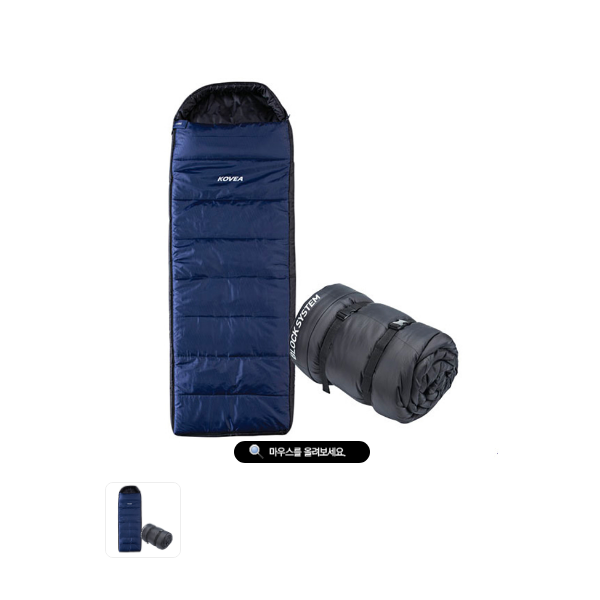 박스형 디자인으로 제작하여 체구가 큰 사람도 내부에서 움직이 편한 침낭. 바람을 막는 윈드 블럭, 내부 수납 주머니, 후드 조임 스트링 적용.