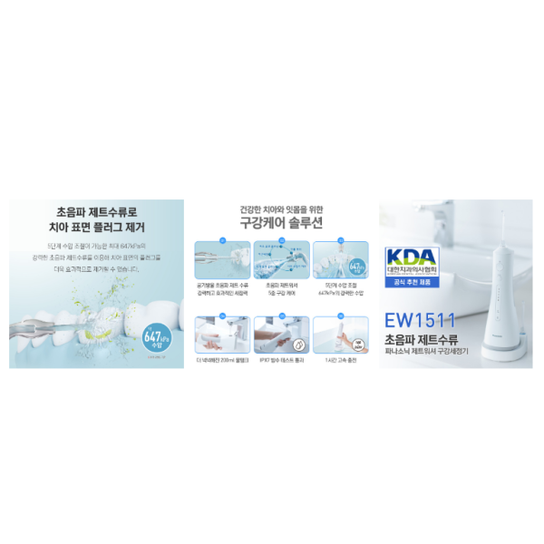 구강세정기 / 휴대용 / 충전식 / 거치대포함 / 맥동수: 분당1600회 / 물통용량: 200ml / 노즐수: 2개 / 수압조절: 5단계 / 방수 / 거치대 / 무게: 0.275kg / 크기(가로x세로x깊이): 75x210x85mm